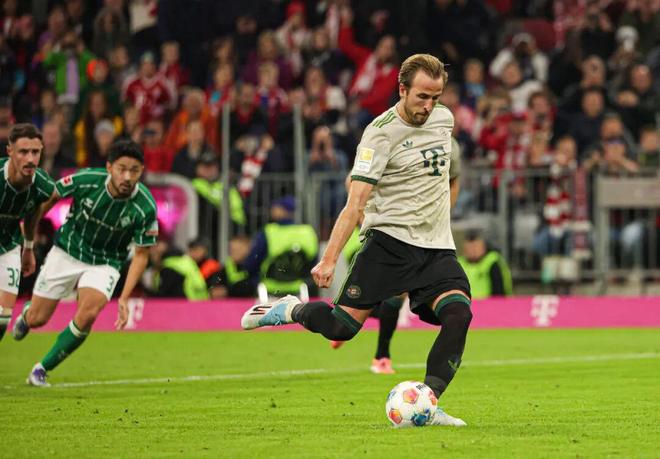 本赛季的凯恩又一次火力全开,前8轮德甲狂轰12球,再算上欧冠、德国杯和弗朗茨·贝肯鲍尔超级杯,开季14场各项赛事打进22球,效率惊人!其中联赛第5轮拜仁主场4比0大胜不来梅,凯恩造点并亲自操刀命中,德甲生涯连续18次主罚点球弹无虚发,从未罚丢;下半场他又在门前右脚捅射完成梅开二度,打进拜仁生涯100球,超越C罗和哈兰德,成为本世纪欧洲五大联赛为单一俱乐部最快打进百球的球员,只用了104场比赛。